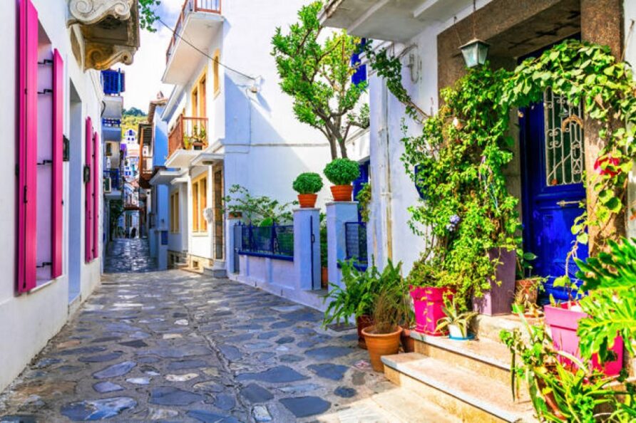 Στο εσωτερικό της ειναι διακοσμημένη με έργα Σκοπελιτών καλλιτεχνών (πίνακες ζωγραφικής και κεραμικά είδη).
